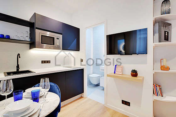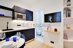 Cet appartement dispose d'une cuisine et tout l'équipement nécessaire pour votre quotidien : plaques de cuisson, réfrigerateur, micro ondes, grille pain, bouilloire électrique, cafetière.