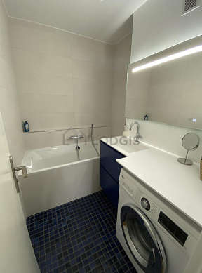 Cet appartement est équipé d'une salle de bain magnifique et très claire. Cette salle d'eau bénéficie du nécessaire pour votre bien-être au quotidien : baignoire, lavabo, miroir, radiateur sèche-serviettes. Les toilettes sont séparées de la salle de bain et situées dans une pièce indépendante.