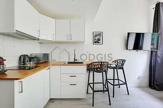 Cet appartement dispose d'une cuisine et tout l'équipement essentiel pour votre quotidien : réfrigerateur, micro ondes, grille pain, bouilloire électrique, cafetière, 1 chaise(s), bar.