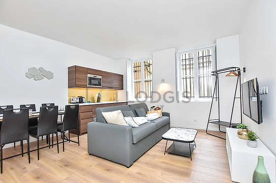 SéjourCet appartement est composé d'un salon des fenêtres. Ce salon est meublé et équipé pour rendre votre séjour agréable : télé, canapé, table à manger, table basse, 1 chaise(s)1 canapé(s) lit(s) de 140cm.