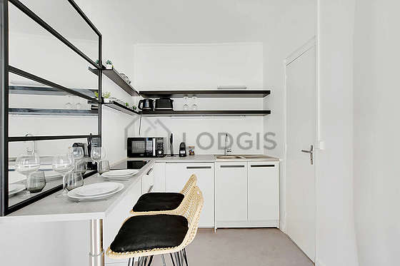 Cet appartement dispose d'une cuisine et tout l'équipement indispensable pour votre quotidien : plaques de cuisson, réfrigerateur, micro ondes, grille pain, bouilloire électrique, cafetière.