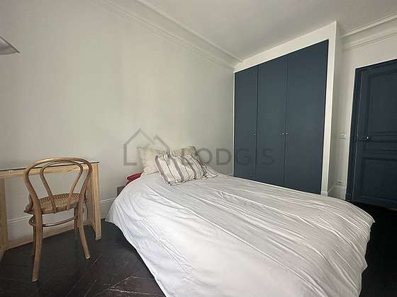 Avec du parquet au sol et des fenêtres double vitrage cette chambre séduisante offre l'équipement nécessaire pour vous reposer pendant votre séjour : draps, couettes, bureau, placard, 1 chaise(s), lampadaire sur pied, miroir, tableau1 lit(s) de 140cm.