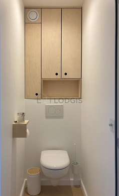 Cet appartement est équipé d'une salle de bain magnifique et très claire. Cette salle d'eau bénéficie du nécessaire pour votre bien-être au quotidien : placard, douche séparée, lavabo. Les toilettes sont séparées de la salle de bain et situées dans une pièce indépendante.