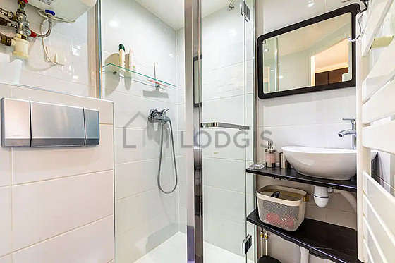 Cet appartement dispose d'une magnifique cuisine avec du parquet au sol et tout l'équipement essentiel pour votre quotidien : plaques de cuisson, réfrigerateur, congélateur, micro onde combiné, hotte, grille pain, bouilloire électrique, cafetière, placard, vaisselle.