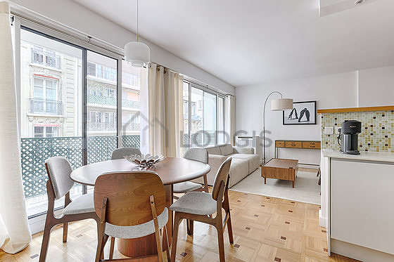 Afin de partager vos repas en toute convivialité pendant votre séjour à Paris, cet appartement dispose d'une magnifique salle à manger qui peut accueillir jusqu'à 4 convives grâce à table à manger, 1 chaise(s).