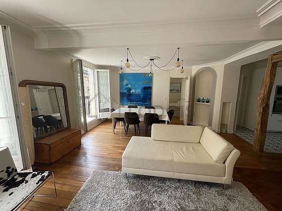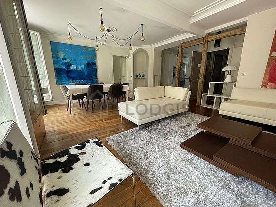 SéjourCet appartement est composé d'un magnifique salon avec du parquet au sol et des fenêtres. Ce salon très calme est meublé et équipé pour rendre votre séjour agréable : table à manger, table basse, bibliothèque, 1 chaise(s).