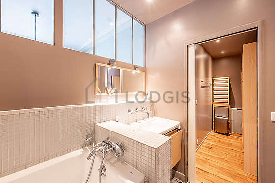 Cet appartement est équipé d'une salle de bain. Cette salle d'eau bénéficie du nécessaire pour votre bien-être au quotidien : etagère, baignoire, douche séparée, lavabo. Les toilettes sont séparées de la salle de bain et situées dans une pièce indépendante.