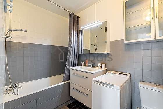 Cet appartement est équipé d'une salle de bain magnifique et très claire. Cette salle d'eau bénéficie du nécessaire pour votre bien-être au quotidien : etagère, placard, douche séparée, etendoir, lavabo, miroir, poubelle, tapis. Les toilettes sont séparées de la salle de bain et situées dans une pièce indépendante.