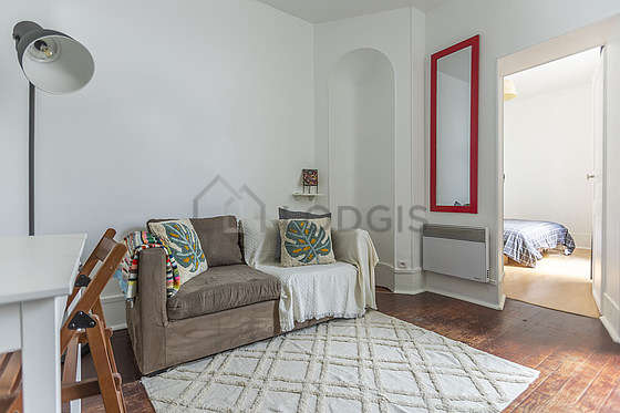 SéjourCet appartement est composé d'un superbe salon avec du parquet au sol et des fenêtres double vitrage. Ce salon très calme est meublé et équipé pour rendre votre séjour agréable : télé, couettes, canapé, bureau, etagère, placard, 1 chaise(s), lampadaire sur pied, lampe, miroir, tapis.