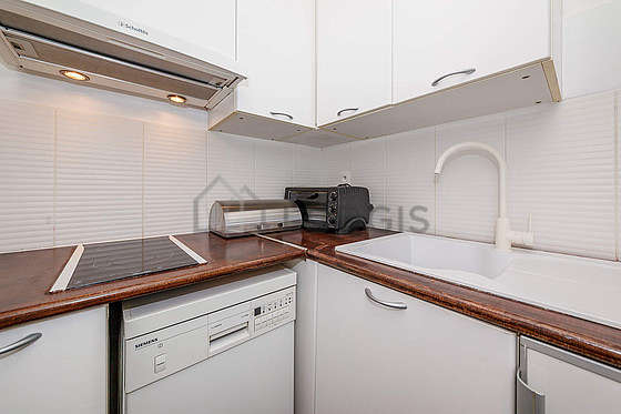 Cet appartement dispose d'une cuisine et tout l'équipement nécessaire pour votre quotidien : plaques de cuisson, réfrigerateur, congélateur, four, micro ondes, hotte, grille pain, bouilloire électrique, cafetière, placard, vaisselle.