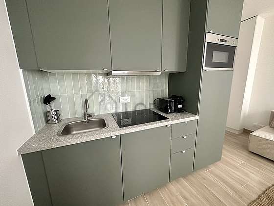Cet appartement dispose d'une cuisine et tout l'équipement indispensable pour votre quotidien : plaques de cuisson, réfrigerateur, four, micro onde combiné, hotte, grille pain, cafetière, placard, vaisselle.
