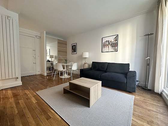 SéjourCet appartement est composé d'un magnifique salon avec du parquet au sol et des fenêtres double vitrage. Ce salon très calme est meublé et équipé pour rendre votre séjour agréable : télé, draps, couettes, canapé, table à manger, table basse, 1 chaise(s), meuble tv1 canapé(s) lit(s) de 140cm.