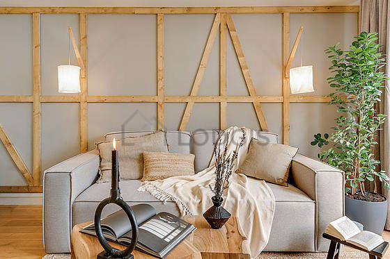 Cet appartement est composé d'un salon des fenêtres. Ce salon est meublé et équipé pour rendre votre séjour agréable : télé, canapé, armoire, placard.