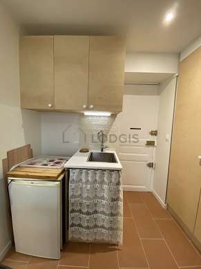 Cet appartement dispose d'une magnifique cuisine avec du carrelage au sol et tout l'équipement nécessaire pour votre quotidien : plaques de cuisson, réfrigerateur, four, bouilloire électrique, cafetière, placard, vaisselle.