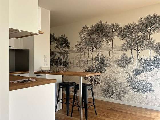 Cet appartement est composé d'un beau salon avec du parquet au sol et des fenêtres double vitrage. Ce salon très calme est meublé et équipé pour rendre votre séjour agréable : télé, draps, couettes, 1 fauteuil(s), table à manger, bureau, vaisselle, bar, lampadaire sur pied1 canapé(s) lit(s) de 140cm.