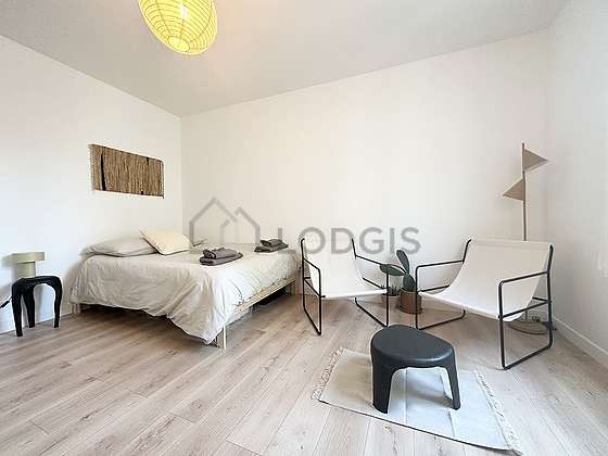 SéjourCet appartement est composé d'un magnifique salon avec du parquet au sol et des fenêtres et vue sur cour. Ce salon calme est meublé et équipé pour rendre votre séjour agréable : table à manger, table basse, placard, 1 chaise(s), table de chevet1 lit(s) de 140cm.
