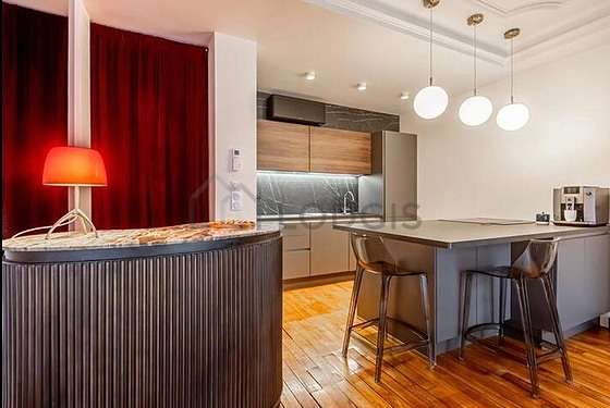 Afin de partager vos repas en toute convivialité pendant votre séjour à Paris, cet appartement dispose d'une salle à manger grâce à table à manger, commode, 1 chaise(s).