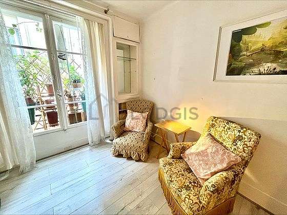 SéjourCet appartement est composé d'un salon des fenêtres. Ce salon est meublé et équipé pour rendre votre séjour agréable : 1 fauteuil(s), table à manger, bureau, bibliothèque, etagère, commode.