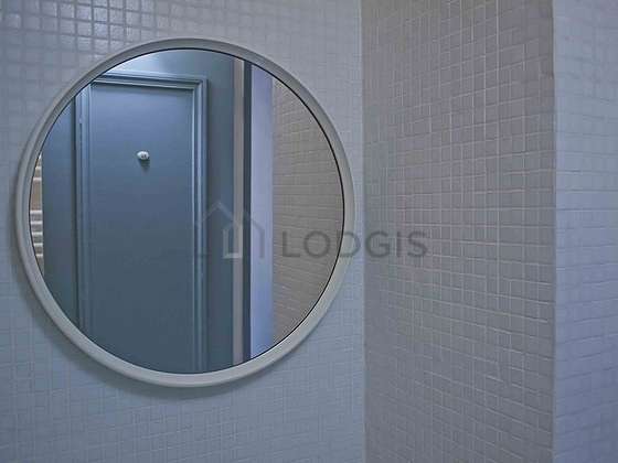 Cet appartement est équipé d'une salle de bain. Cette salle d'eau bénéficie du nécessaire pour votre bien-être au quotidien : serviettes de bain, etagère, commode, douche séparée, tabouret, sèche cheveux, lavabo, miroir, porte serviettes, poubelle, radiateur sèche-serviettes, tapis, ventilateur. Les toilettes sont intégrées dans la salle de bain.