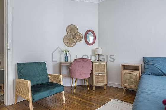 SéjourCet appartement est composé d'un beau salon avec du parquet au sol et des fenêtres double vitrage. Ce salon très calme est meublé et équipé pour rendre votre séjour agréable : télé, canapé, 1 fauteuil(s), table basse, buffet.