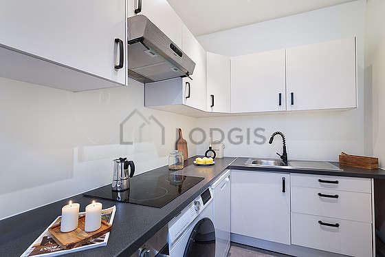 Cet appartement dispose d'une cuisine et tout l'équipement nécessaire pour votre quotidien : plaques de cuisson, réfrigerateur, four, micro ondes, grille pain, vaisselle.