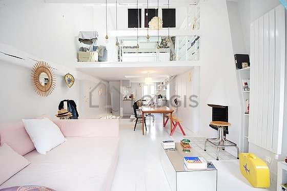 Grâce à une belle hauteur sous plafond, une mezzanine a pu être installée dans cet appartement , vous offrant ainsi une vraie pièce supplémentaire équipée de bureau, 1 chaise(s).