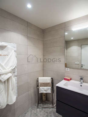 Cet appartement est équipé d'une salle de bain. Cette salle d'eau bénéficie du nécessaire pour votre bien-être au quotidien : lavabo, radiateur sèche-serviettes. Les toilettes sont séparées de la salle de bain et situées dans une pièce indépendante.