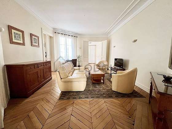 SéjourCet appartement est composé d'un salon avec du parquet au sol et des fenêtres double vitrage. Ce salon est meublé et équipé pour rendre votre séjour agréable : télé, canapé, 1 fauteuil(s), table à manger, table basse, bureau, buffet, 1 chaise(s).