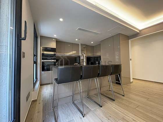 Cet appartement dispose d'une cuisine et tout l'équipement essentiel pour votre quotidien : plaques de cuisson, réfrigerateur, congélateur, four, micro ondes, hotte, grille pain, bouilloire électrique, cafetière, placard, vaisselle, tabouret, bar.