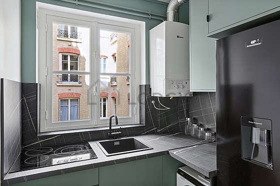 Cet appartement dispose d'une cuisine et tout l'équipement essentiel pour votre quotidien : plaques de cuisson, réfrigerateur, congélateur, four, micro ondes, grille pain, bouilloire électrique, cafetière, placard, vaisselle.