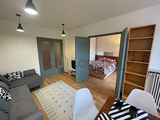 Cet appartement est composé d'un salon avec du parquet au sol et des fenêtres double vitrage. Ce salon calme est meublé et équipé pour rendre votre séjour agréable : télé, canapé, table à manger, bibliothèque, commode, 1 chaise(s), meuble tv1 canapé(s) lit(s) de 180cm.