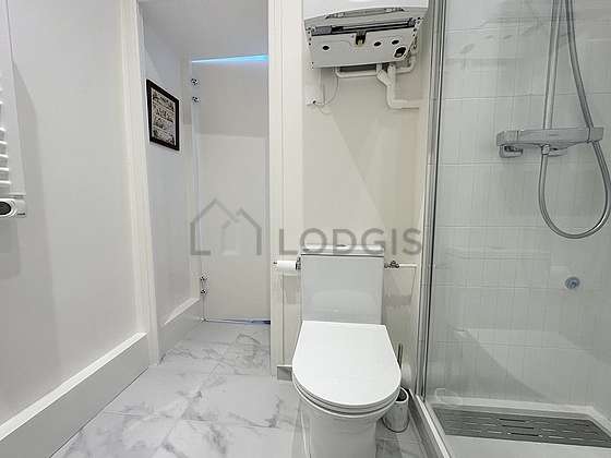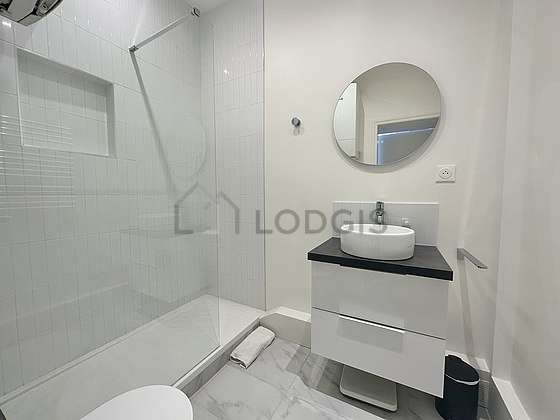 Cet appartement est équipé d'une salle de bain. Cette salle d'eau bénéficie du nécessaire pour votre bien-être au quotidien : douche séparée, lavabo, radiateur sèche-serviettes. Les toilettes sont intégrées dans la salle de bain.