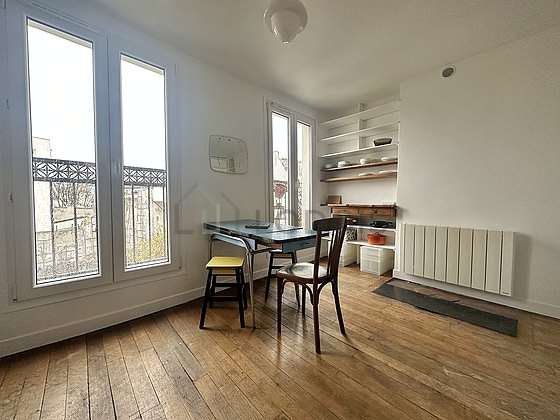 SéjourCet appartement est composé d'un charmant salon avec du parquet au sol et des fenêtres double vitrage et vue sur rue. Ce salon calme est meublé et équipé pour rendre votre séjour agréable : canapé, table à manger, etagère, 1 chaise(s).