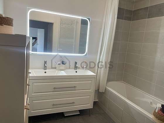 Cet appartement est équipé d'une salle de bain agréable et claire. Cette salle d'eau bénéficie du nécessaire pour votre bien-être au quotidien : etagère, baignoire, lavabo. Les toilettes sont séparées de la salle de bain et situées dans une pièce indépendante.
