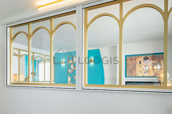 Afin de partager vos repas en toute convivialité pendant votre séjour à Paris, cet appartement dispose d'une magnifique salle à manger qui peut accueillir jusqu'à 4 convives grâce à table à manger, buffet, vaisselle, 1 chaise(s), miroir, tapis.