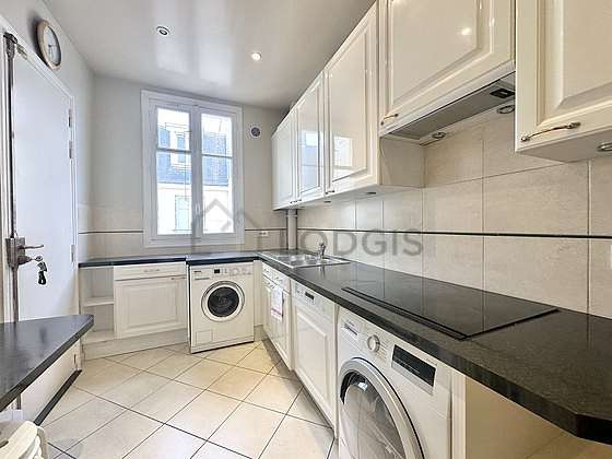 Afin de partager vos repas en toute convivialité pendant votre séjour à Paris, cet appartement dispose d'une agréable salle à manger qui peut accueillir jusqu'à 6 convives grâce à table à manger, commode, 6 chaise(s).