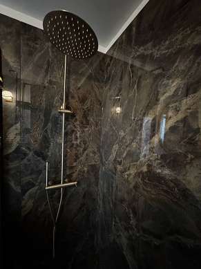 Cet appartement est équipé d'une salle de bain. Cette salle d'eau bénéficie du nécessaire pour votre bien-être au quotidien : serviettes de bain, commode, douche séparée, etendoir, lavabo, ventilateur. Les toilettes sont séparées de la salle de bain et situées dans une pièce indépendante.