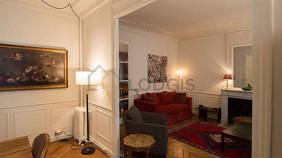 SéjourCet appartement est composé d'un salon avec du parquet au sol et des fenêtres. Ce salon est meublé et équipé pour rendre votre séjour agréable : télé, canapé, 1 fauteuil(s), table basse, bibliothèque, cheminée.
