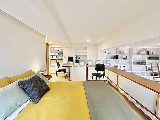 SéjourCet appartement est composé d'un salon avec du parquet au sol et des fenêtres. Ce salon très calme est meublé et équipé pour rendre votre séjour agréable : canapé, 1 fauteuil(s), table basse, bibliothèque, etagère, tabouret, lampe, stores.