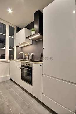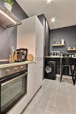 Cet appartement dispose d'une cuisine et tout l'équipement essentiel pour votre quotidien : plaques de cuisson, réfrigerateur, four, micro onde combiné, hotte.