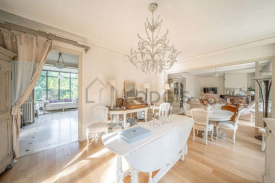 Cette maison individuelle est dotée d'unevéranda avec du carrelage au sol. Véritable pièce supplémentaire équipée de canapé cette véranda saura rendre votre séjour à Paris encore plus confortable au quotidien.