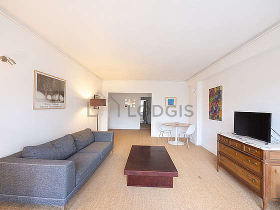 Cet appartement est composé d'un charmant salon avec du coco au sol et des fenêtres avec balcon et vue sur rue. Ce salon très calme est meublé et équipé pour rendre votre séjour agréable : télé, canapé, 1 fauteuil(s), table à manger, table basse, commode, 2 chaise(s).