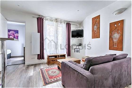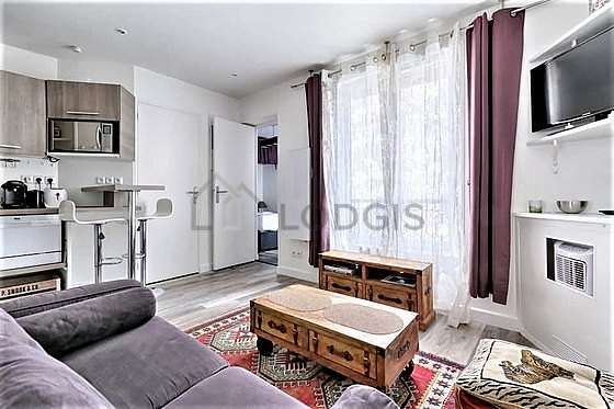 SéjourCet appartement est composé d'un superbe salon avec du parquet au sol et des fenêtres double vitrage et vue sur cour. Ce salon très calme est meublé et équipé pour rendre votre séjour agréable : télé, canapé, table basse, penderie, etagère, placard.