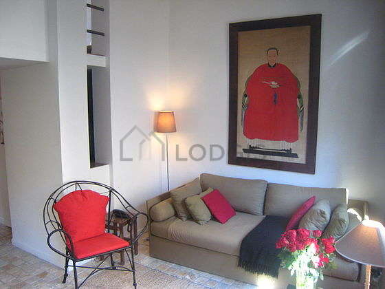 SéjourCet appartement est composé d'un beau salon avec du carrelage au sol et des fenêtres double vitrage et vue sur rue. Ce salon très calme est meublé et équipé pour rendre votre séjour agréable : télé, canapé, 2 fauteuil(s), table à manger, table basse, penderie, commode, placard, 3 chaise(s).