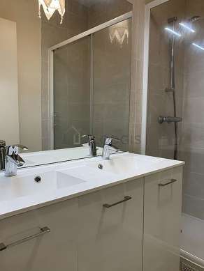 Cet appartement est équipé d'une salle de bain. Cette salle d'eau bénéficie du nécessaire pour votre bien-être au quotidien : serviettes de bain, etagère, placard, baignoire, sèche cheveux. Les toilettes sont séparées de la salle de bain et situées dans une pièce indépendante.