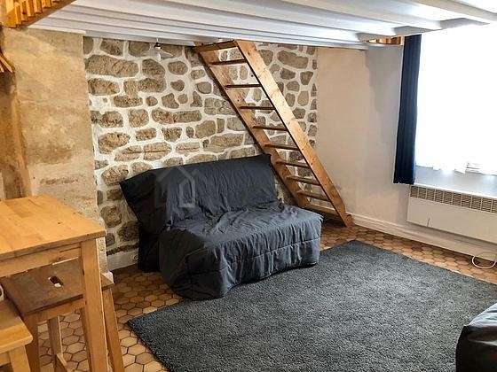 Cet appartement est composé d'un séduisant salon avec du carrelage au sol et des fenêtres et vue sur rue. Ce salon calme est meublé et équipé pour rendre votre séjour agréable : télé, table à manger, table basse, penderie, placard, 6 chaise(s)1 lit(s) de 90cm, 1 canapé(s) lit(s) de 140cm.