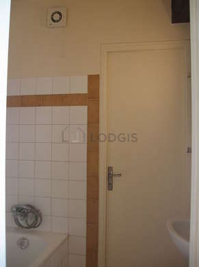 Cet appartement est équipé d'une salle de bain. Cette salle d'eau bénéficie du nécessaire pour votre bien-être au quotidien : serviettes de bain, placard, baignoire. Les toilettes sont séparées de la salle de bain et situées dans une pièce indépendante.
