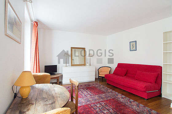 Cet appartement est composé d'un séduisant salon avec du parquet au sol et des fenêtres double vitrage et vue sur rue. Ce salon très calme est meublé et équipé pour rendre votre séjour agréable : télé, 2 fauteuil(s), table à manger, table basse, etagère, commode, 6 chaise(s)1 canapé(s) lit(s) de 140cm.
