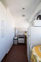 Cet appartement dispose d'une cuisine avec du carrelage au sol et tout l'équipement essentiel pour votre quotidien : plaques de cuisson, réfrigerateur, congélateur, four, micro ondes, grille pain, bouilloire électrique, cafetière, table à manger, placard, vaisselle, 2 chaise(s).