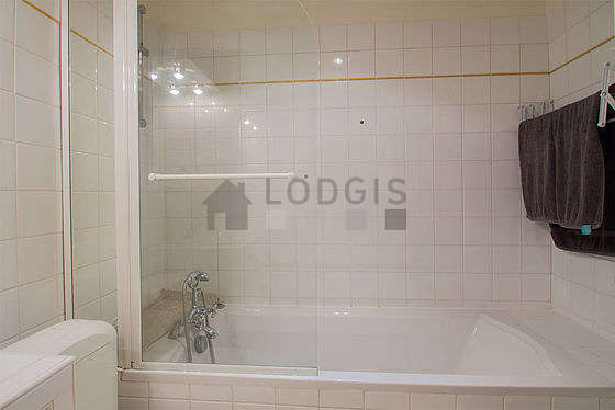Cet appartement est composé d'un beau salon avec du parquet au sol et des fenêtres et vue sur rue. Ce salon très calme est meublé et équipé pour rendre votre séjour agréable : télé, 2 fauteuil(s), table à manger, table basse, etagère, 2 chaise(s)1 canapé(s) lit(s) de 120cm.